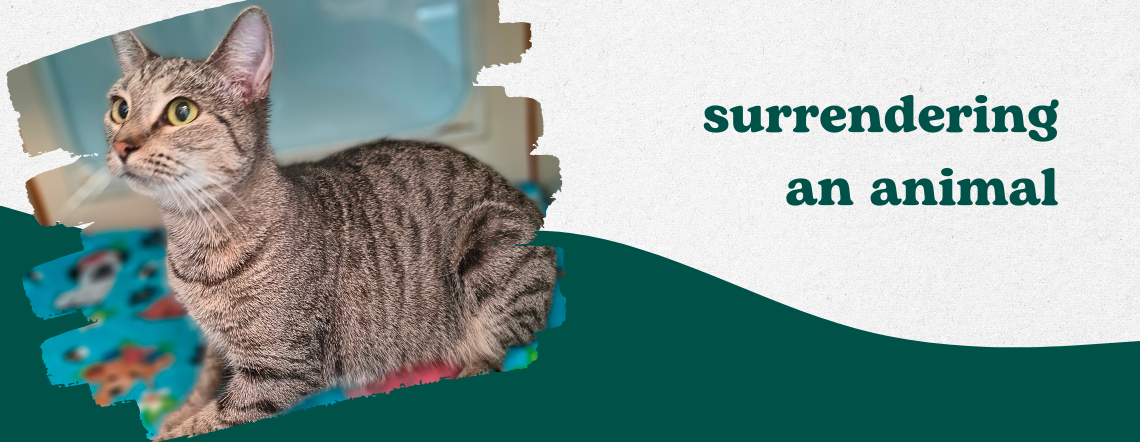 If the animal in is aggressive, in immediate danger, or cannot wait for an intake appointment, you may try reaching out to your city’s animal control to set up a surrender appointment with them.